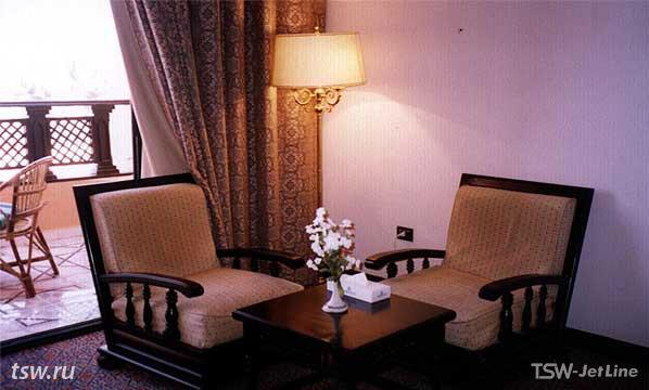 Расположение построен в 1997 году, расположен в 12 км от аэропорта, в 20 км от пос Хургада, на самом берегу моря Описание отеля Одно 5-ти этажное здание - Main Building и комплекс одноэтажных и двухэтажных бунгало: 322 standart rooms (50% sea view макс 2 взр + 2 реб); 38 suites; 84 connection rooms. Размещения с животными - нет. В номере: • ванна/душ • индивидуальный кондиционер • телефон • телевизор • холодильник • сейф (бесплатно, reception) • фен • балкон/терраса (не везде) • уборка номера - ежедневно • смена белья - 4 раза в неделю • обслуживание в номерах - 24 часа В отеле: • 2 ресторана • 2 бара • национальное кафе • магазины • конференц-зал (на 500 чел) • открытый бассейн • прокат автомобилей • кабинет врача • обмен валюты • фото сервис • прачечная • детский бассейн • мини-клуб • фуникулер из отеля на пляж (платно) • цветовой музыкальный фонтан • амфитеатр Рестораны и бары • баня • сауна • тренажерный зал • массаж • джакузи • 4 теннисных корта • настольный теннис • бильярд • верховая езда • площадка для сквоша • аквацентр • катера для морских прогулок и рыбалки • центр подводного плавания • шоу-программы (2 раза в неделю) • живая музыка • дискотека • аэробика • волейбол на пляже • мини футбол • баскетбол • причал для личных яхт Пляж собственный, песчаный. Зонтики, шезлонги, полотенца, матрасы - бесплатно.