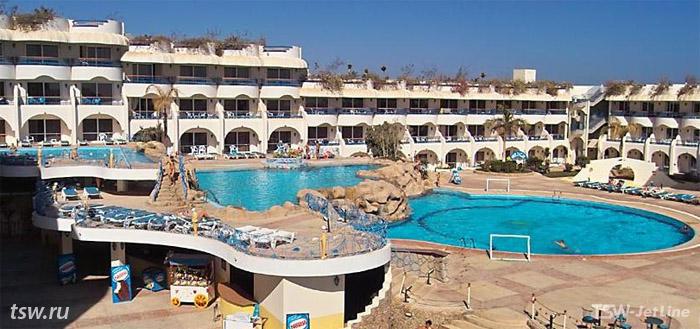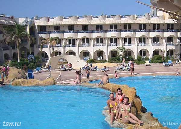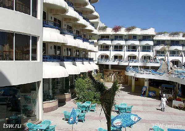 Отель расположен на побережье в самом центре Новой Хургады, недалеко от центра ночной жизни. Состоит из большого пятиэтажного здания, левое крыло которого занимает крупный торговый центр с кинотеатром, и компактной зеленой территории. 383 standart rooms (max. 2+2), 4 однокомнатных suites. Cейф в reception - за дополнительную плату.