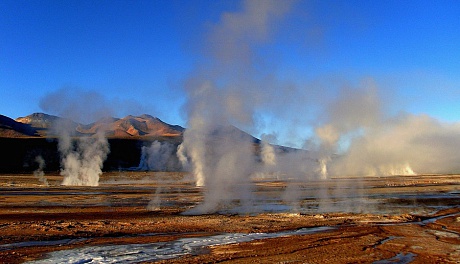 Экскурсия с группой с англоговорящим гидом в национальный парк Вулкана Татио, посещение долины гейзеров Татио. Гейзеры находятся на высоте более 4.000 метров над уровнем моря. Фонтаны горячей воды появляются на рассвете от 06:00 до 07:00 часов. В это время фумаролы воды и пара достигают своей максимальной высоты. Струи воды с температурой до +85°С с силой вырываются из земли, достигая высоты от 8-9 метров. Можно искупаться в бассейне с термальной водой +40°. Сильнейшая влажность в районе гейзеров подарила жизнь многим травянистым растениям, которые привлекают сюда диких животных и птиц.